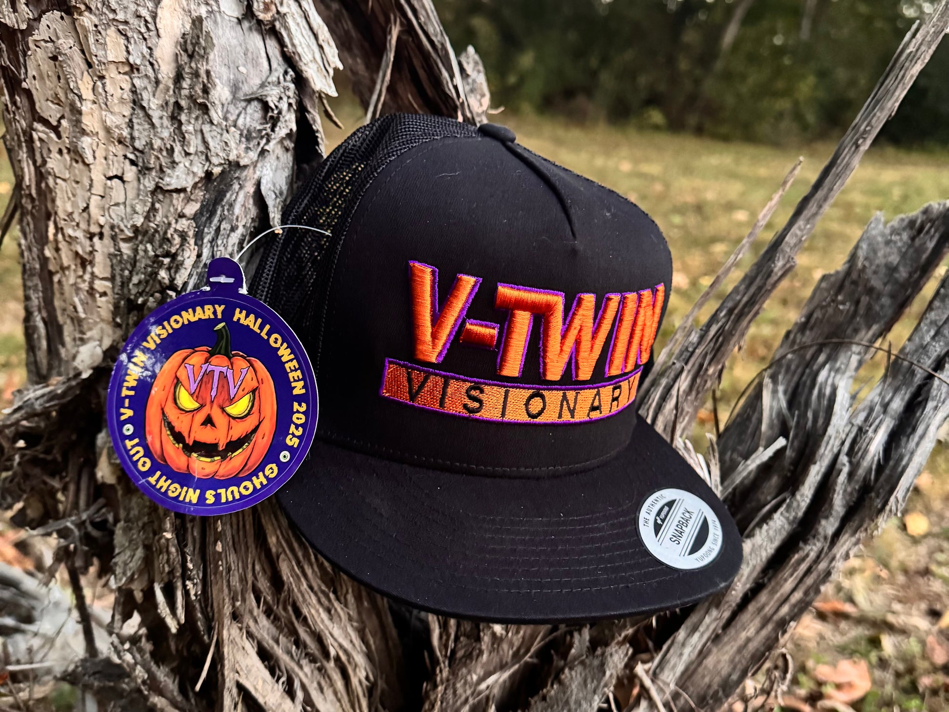 The limited edition hat also comes with a 1-off commemorative “Ghouls Night Out” VTV jack-o’-lantern logo sticker, which is only available with the purchase of this 2025 Halloween edition mesh-backed “classics” hat.