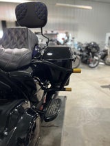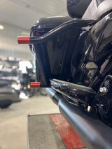 The Bro Bar Bagger Guards are finally in production! Like all of our products, our bag guards are designed for the performance minded individuals. Our bag guards are designed NOT to drag when blasting the canyon roads! But yet designed to do their job in the event things get out of control. The bag guards are a perfect match with our Harley Davidson Bro Bar. We give you the option of finishes and end cap color. All of our parts are built and designed in-house and tested by guys that get out and ride their bikes. All of our parts are purpose built.