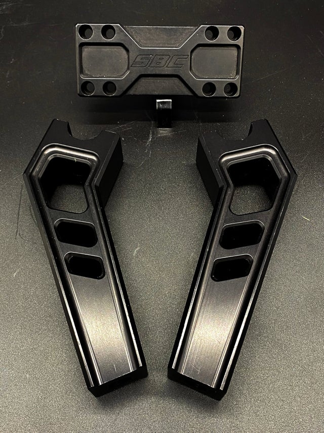 Lightweight and strong pull back risers are here! Risers are offered in 6", 8", 10” and 12” lengths, with 2” pull back. They are designed for 1.125” motocross style bars, with the option to purchase an adapter to use 1” bars. These are the same risers we used on our Challenger build. These risers are designed for the Harley baggers and will also work on the Indian Challenger, with our pull back plate.